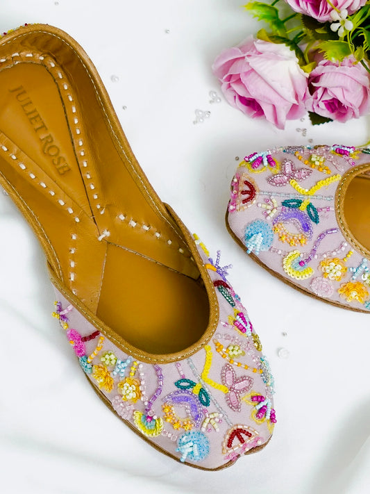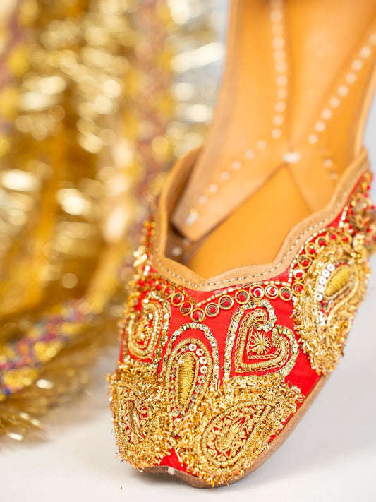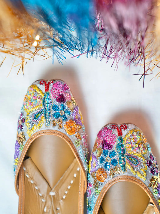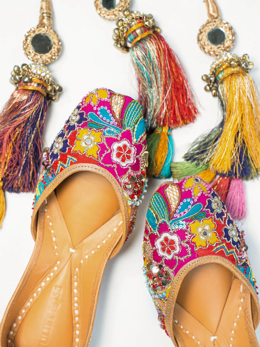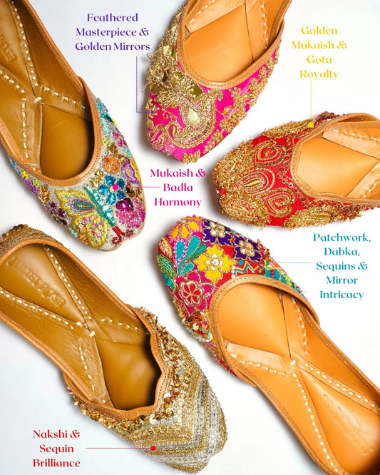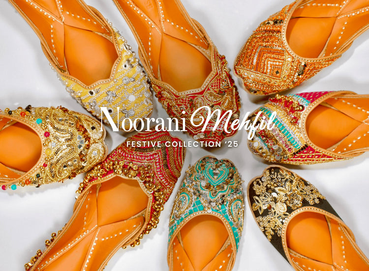 Think old-school glam with a modern twist — where bold colours meet mood, and every jutti is a celebration in itself. Noorani Mehfil is a love letter to the unapologetic 90s — the era of shimmer, statement hues, and main-character moments.Each pair bursts with vibrant energy, handcrafted details, and the kind of sparkle that refuses to whisper. It’s not just a collection — it’s a mood, a memory, a mehfil of colour and confidence.Because in the Juliet Rose world — bold is beautiful, extra is essential, and every step deserves a spotlight ✨