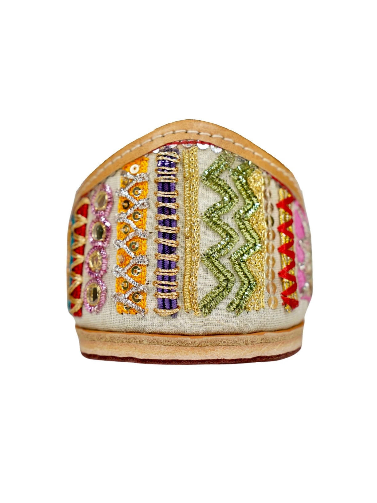 Even the Heel of History is mesmerizing: stacked chevrons, stripes, and mirror bands showcase the full richness of Rajasthani artistry.